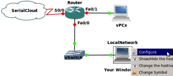 Now your challenge is to join this SerialCloud with another copy of GNS3 WorkBench running the same lab on another computer. Lets assume that the GuestOS (Ubuntu) IP address on the remote machine is 192.168.1.142