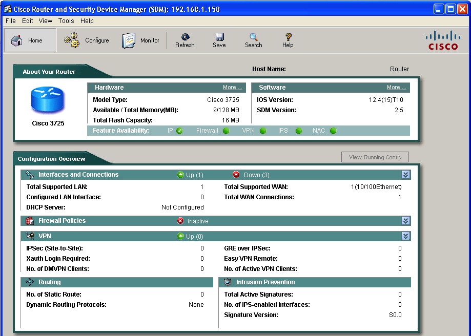 Once you have connectivity between your Host PC and your router, you can telnet directly to your router, or even use Cisco’s Security Device Manage (SDM) to access the router if you desire.