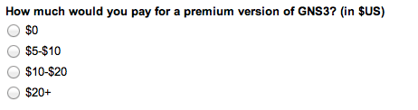 Thanks for your input, you made good valid points about a “premium” version. Be sure our efforts will stay with the current and free software for a long time. Also, the survey is to hear what the community has to say and help us have some long-term thinking about the future of GNS3. So the more comments we get, the better.