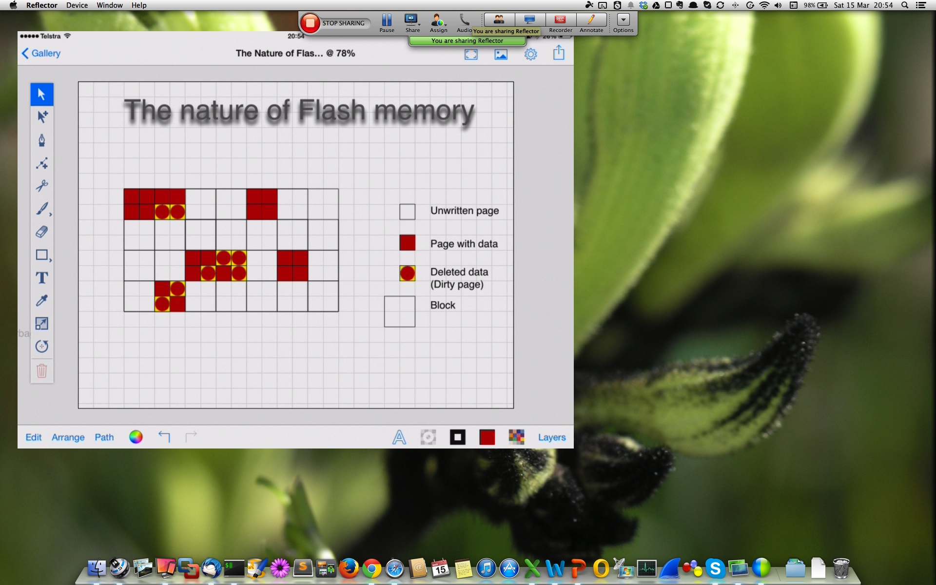 Enter “Reflector“. What a great little app this turned out to be. After trialling it for a few minutes, I forked out the $12.99 and bought it. I have a Mac, but it is available for Windows as well. And it turns your computer into an Airplay device – and of course it is dead easy to send the screen of your iPad to any Airplay device (so long as both are connected to the same wireless network).