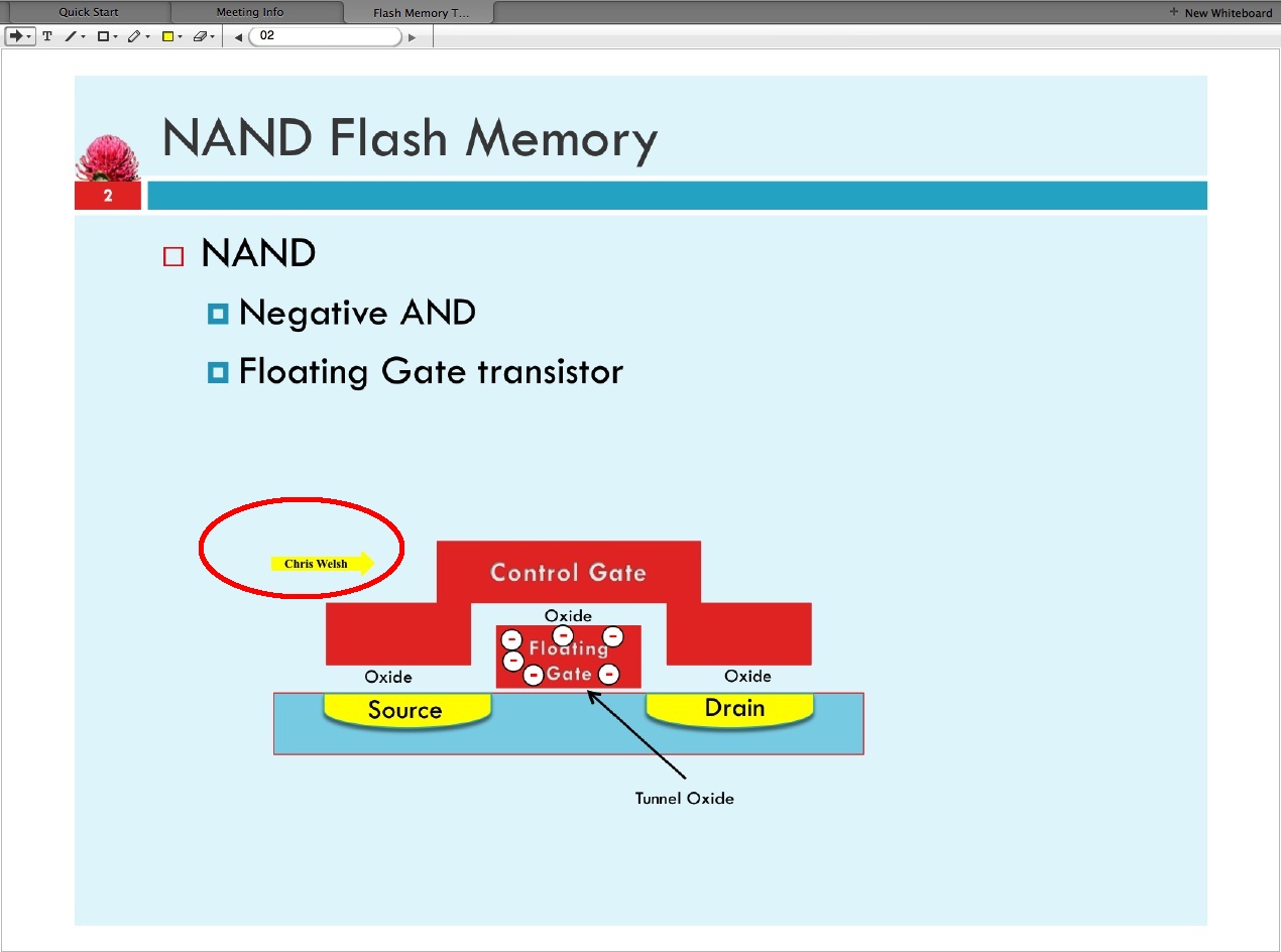 Undaunted, I thought I’d explore the iPad Webex app a little further, and passed the host role to where I was logged in on my iPad to see if the animation tools and Whiteboard would be better on the iPad. As it turns out, they are not only “not better” they are “non-existant”. The iPad Webex app simply does not even have the most basic of annotation tools available. In fact it is worse than bad – the iPad can’t even take control of an already uploaded presentation – all it can do is share content (not apps – so I couldn’t share a whiteboard app). And when you do share a PowerPoint presentation, it gets turned into a continuous scrolling pdf file, so it not only looses animations, gets reformatted so that only about 90% of the slide fits on the screen and, it looses the ability to move through a “page” at a time. This lack of pagination means that if you are presenting from the iPad, be prepared to wait minutes for your remote screens to catch up if you scroll through a lot of pages quickly. The one good thing about sharing from the iPad is that it does have a very neat and responsive “laser pointer” that shows up on the participants screen when you touch your finger on the screen.