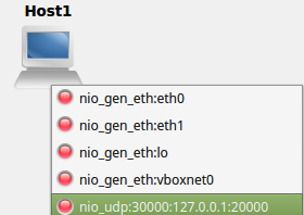 You can now use the connector tool to connect to this nio_udp:30000:127.0.0.02:20000 interface you have created to another device (make sure you select the nio_upd interface)