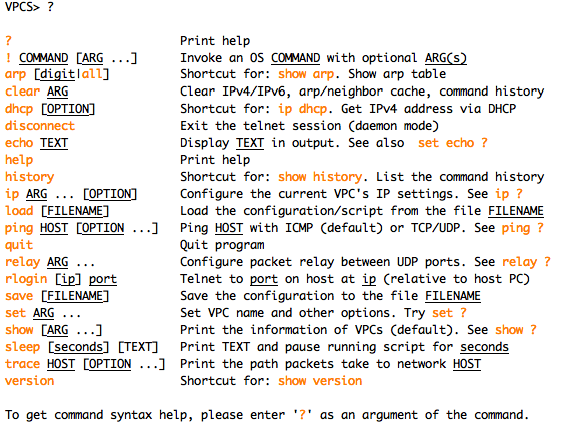 And from here, you can explore VPCS options using the ?