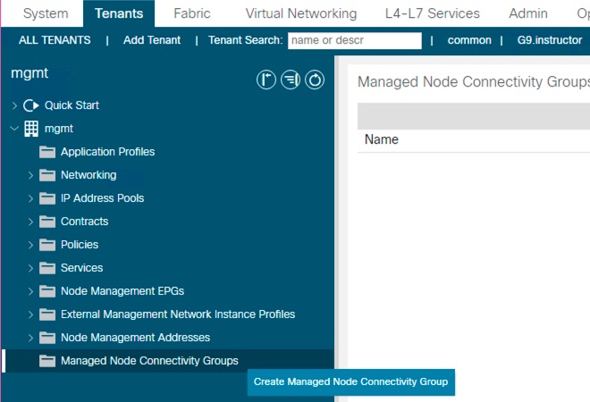Create Management Node Connectivity Group.