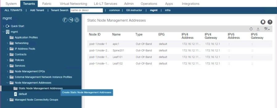 create Static Node Management addresses,