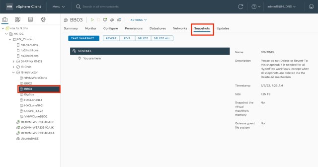 The advantage though was that you could easily check to see if a VM had a SENTINEL snapshot, you just had to click on the Snapshot tab for the VM