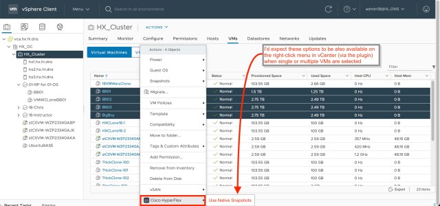 And I’d expect these options to be also available in Intersight, on the right-click menu in vCenter (via the plugin) and even would be nice to have some vm options in the HyperFlex Connect Web CLI – such as stcli vm list (which I’d expect to list the snapshot.alwaysAllowNative parameter among other useful information) and stcli vm [(--id ID | --name NAME)] set snapshot.alwaysAllowNative